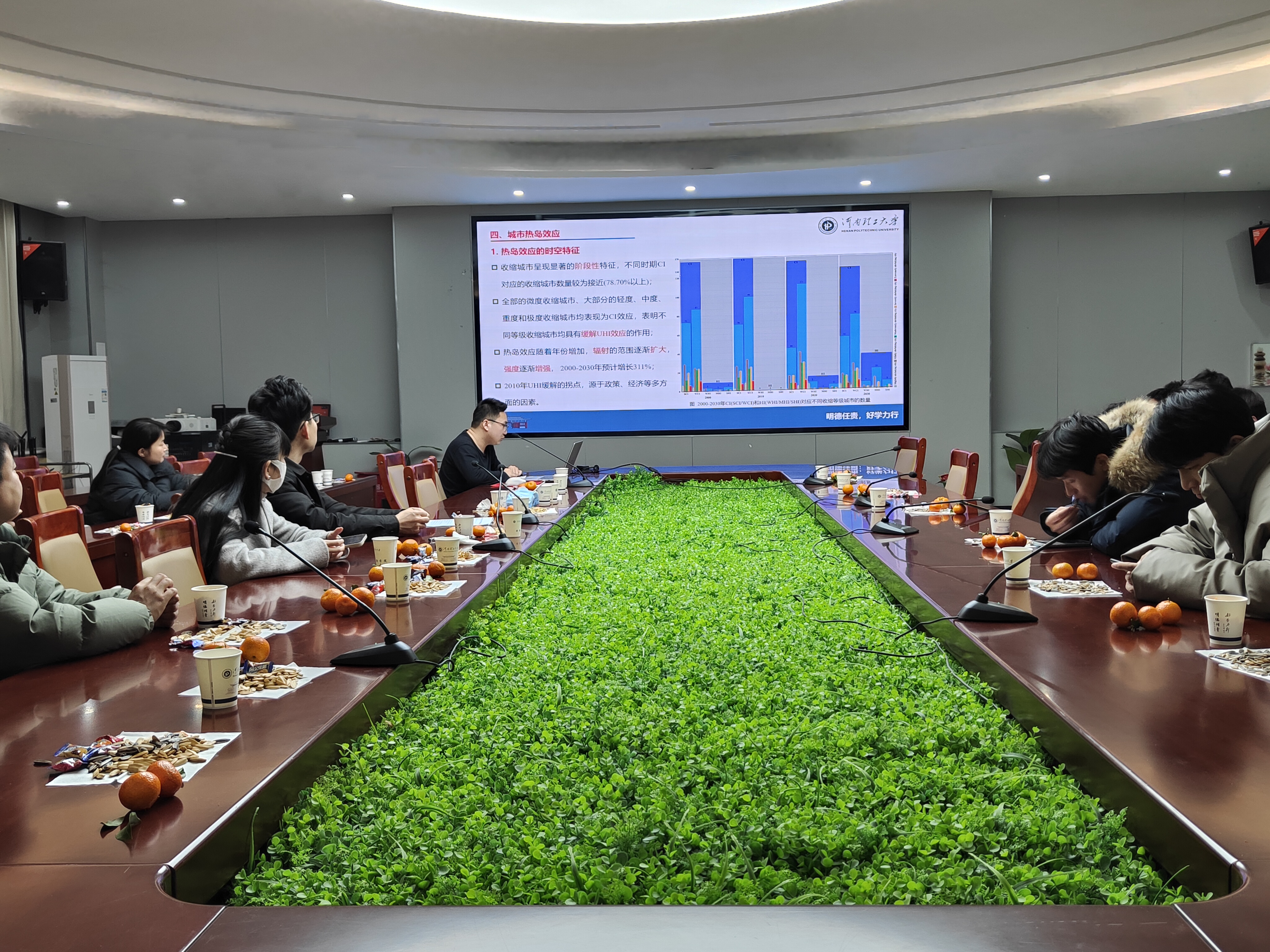 2023级博士生刘亮担任主讲,作题为《中国城市扩张与收缩模式识别及其热岛效应研究》的学术报告。他系统阐述了中国城市扩张与收缩的识别方法、演变规律及其对城市热岛效应的影响机制,并结合自身科研实践,详细分享了学术绘图的方法与技巧,为在场同学提升科研可视化能力提供了实用指导。